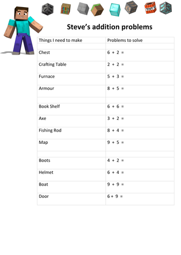 Minecraft addition Teaching Resources
