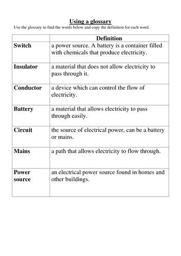 Electricity glossary | Teaching Resources